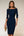 Robe professionnelle midi bleu marine col bâteau manches 3/4 coupe ajustée