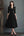 Robe de travail midi en satin noir à col revers en pointe élégante