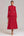 Robe de travail rouge à manches longues fourreau à col en V froncé