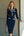 Robe blazer midi à revers en patchwork bleu marine avec nœud