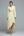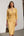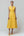 Robe de travail gainée froncée à revers châle jaune à manches 3/4
