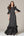 Robe formelle longue à pois fourreau en mousseline de soie noire avec fente