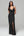 Robe noire à bretelles spaghetti en mousseline de soie à pois avec fente