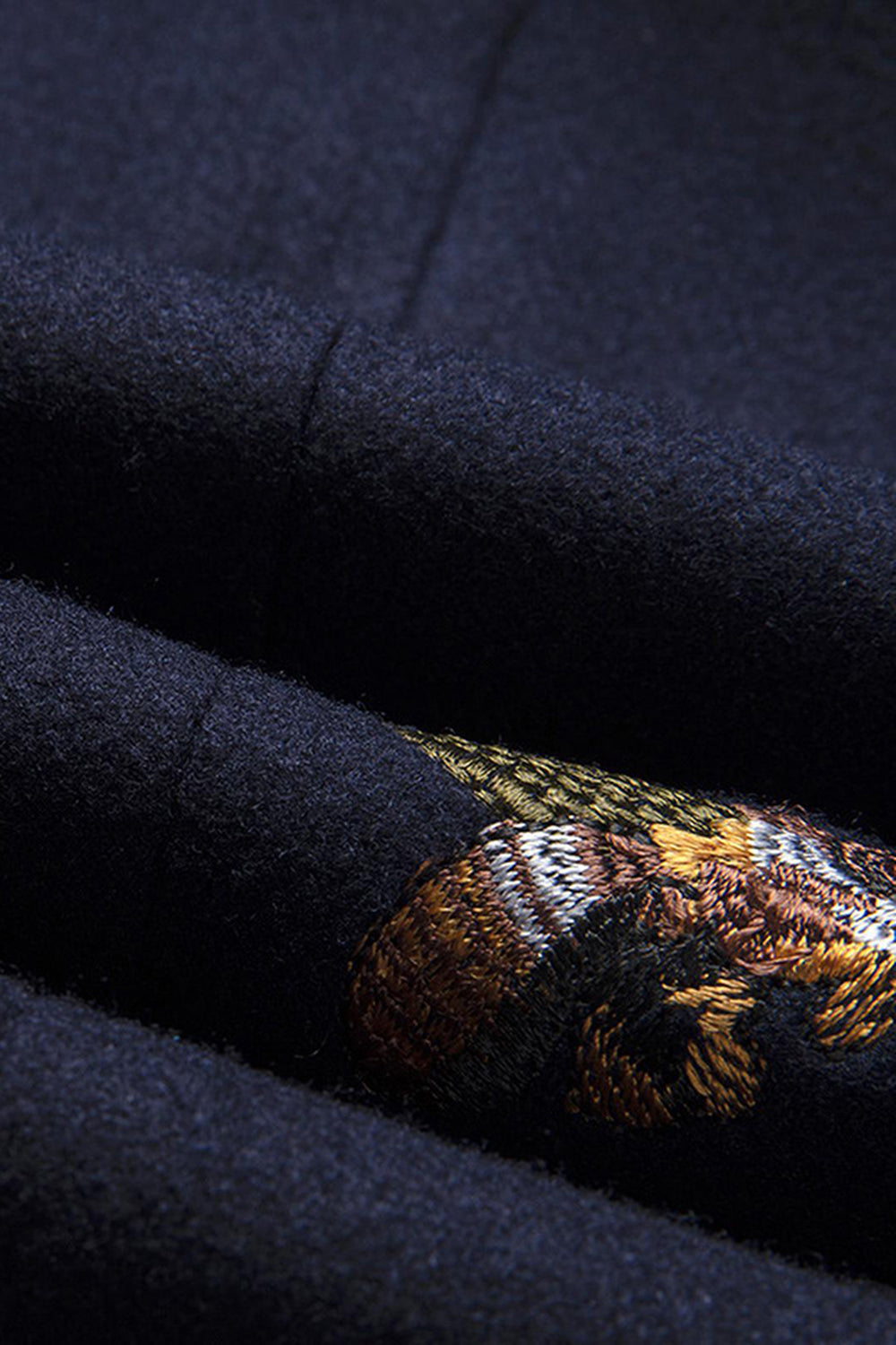 Blazer pour homme brodé à un bouton à revers cranté bleu marine