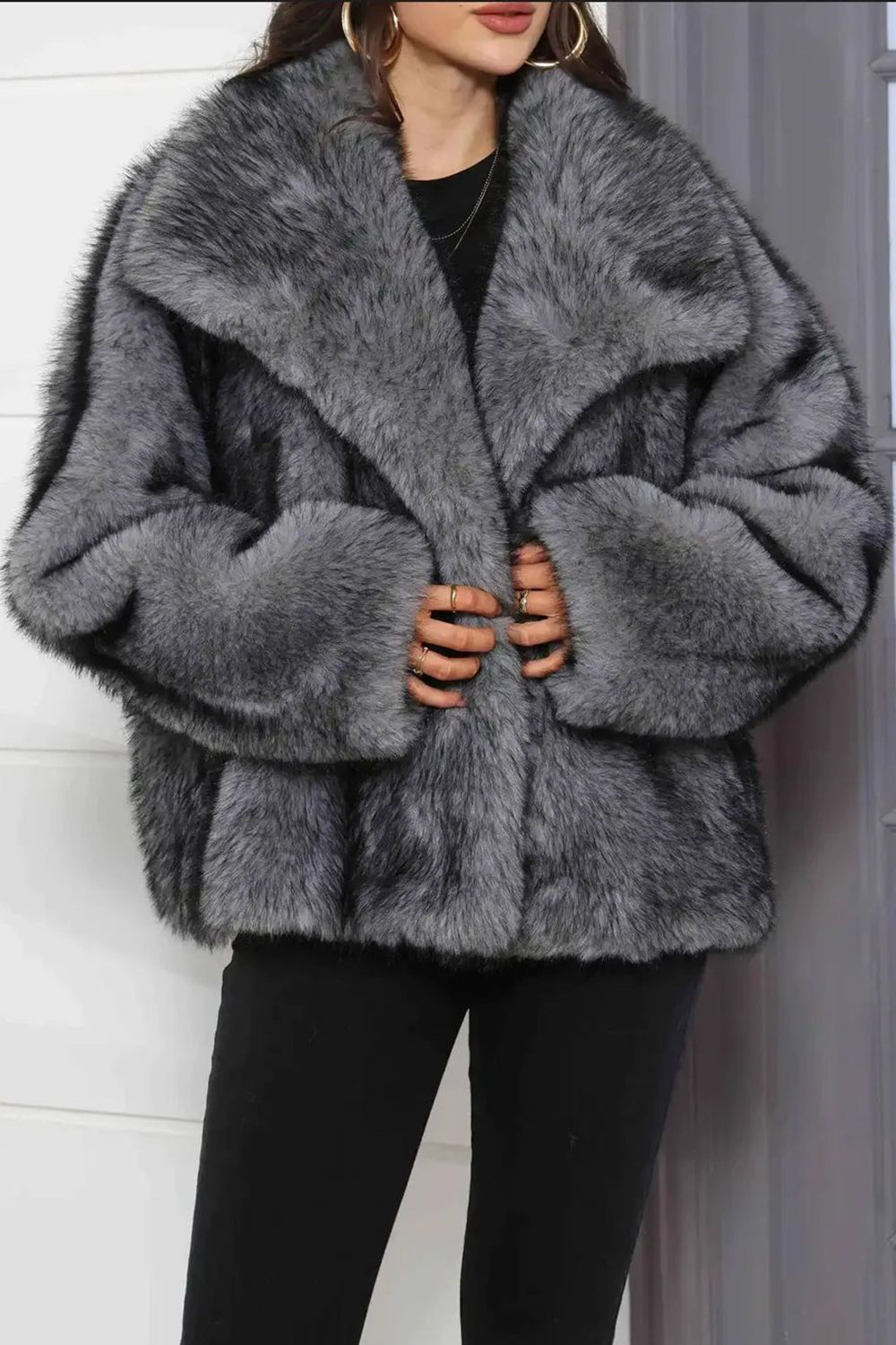 Manteau d’hiver pour femmes en fausse fourrure et châle à manches longues