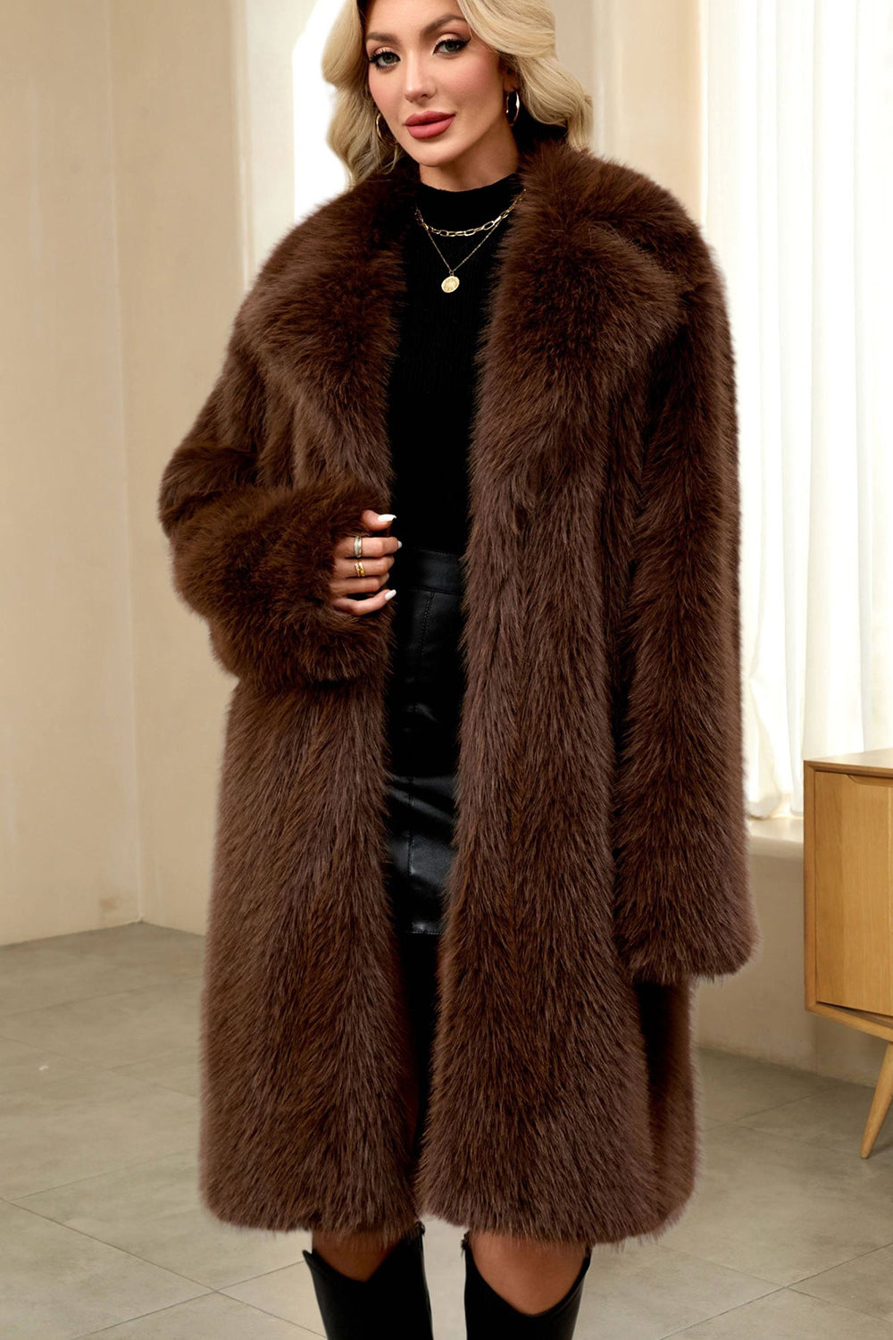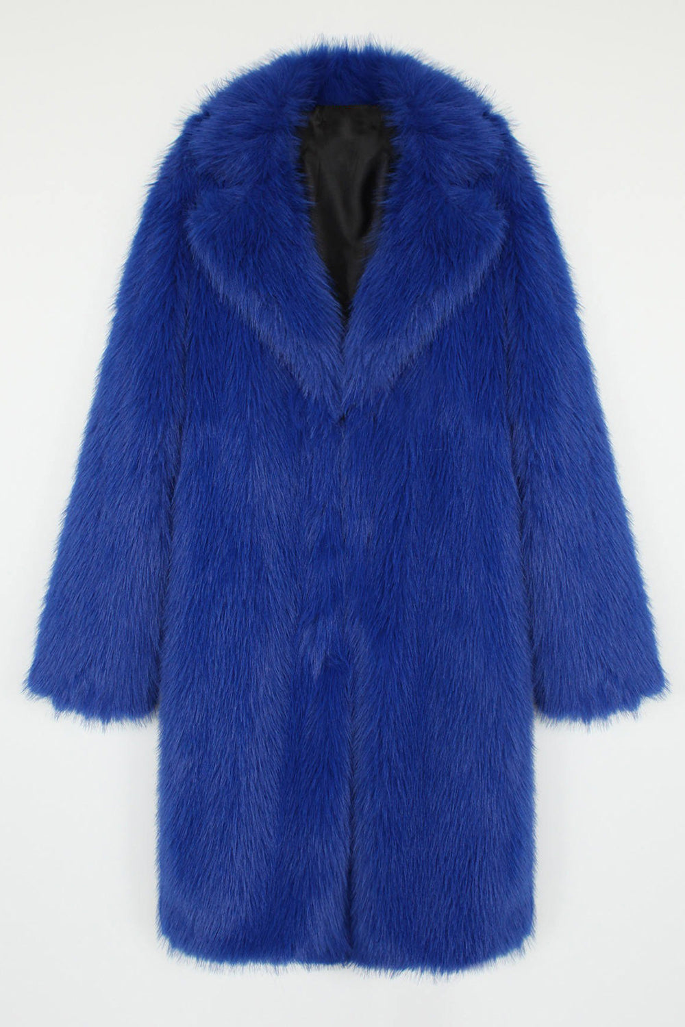 Manteau féminin en fausse fourrure unie bleu royal cranté