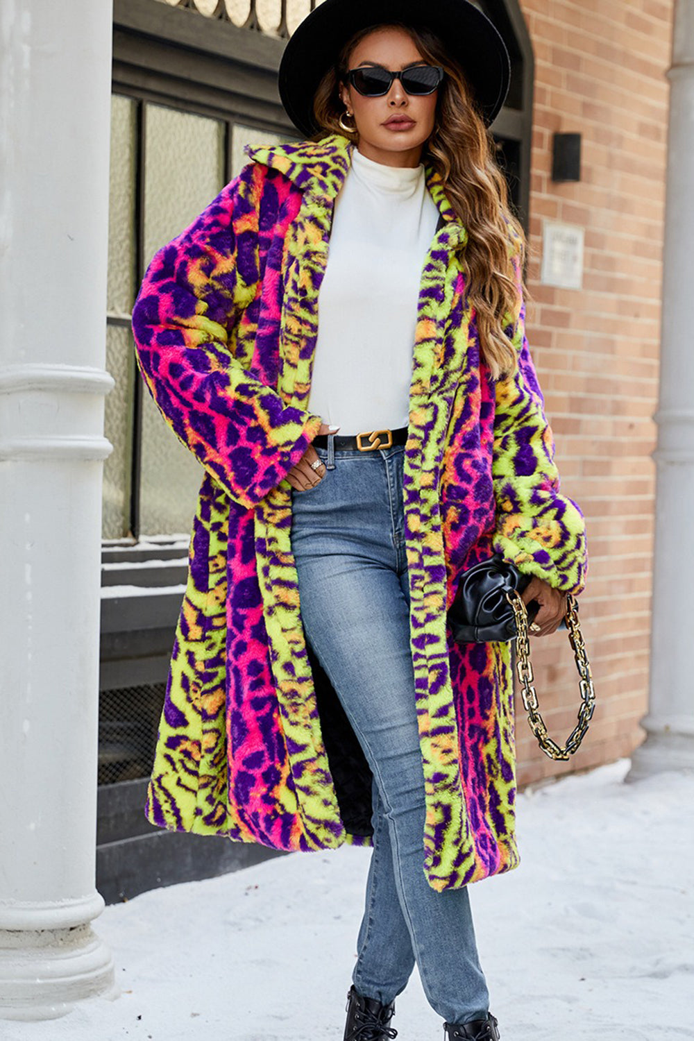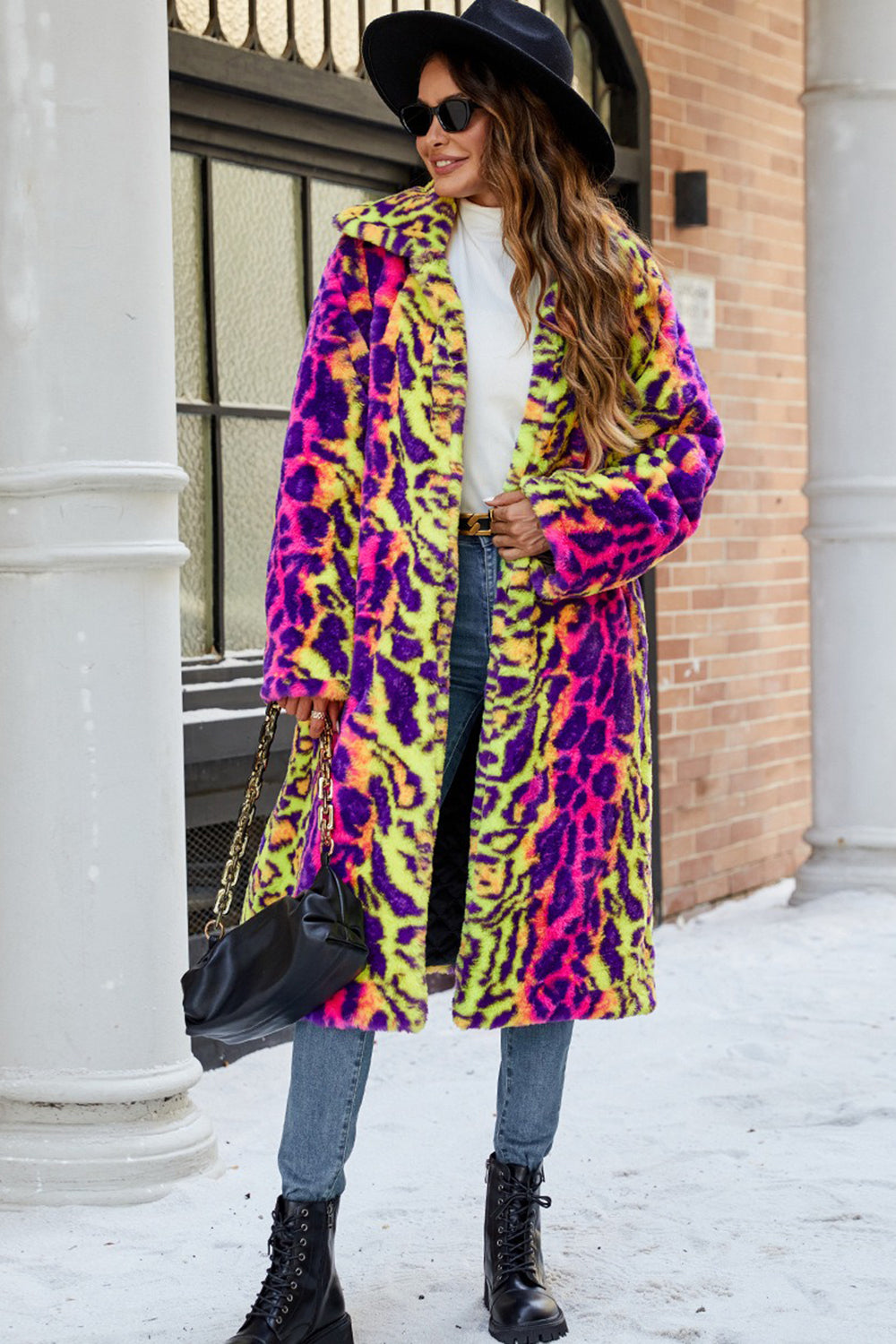 Manteau midi pour femmes en châle en fausse fourrure jaune