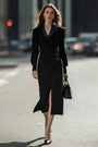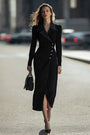 Robe blazer midi à double boutonnage noir crayon avec manches