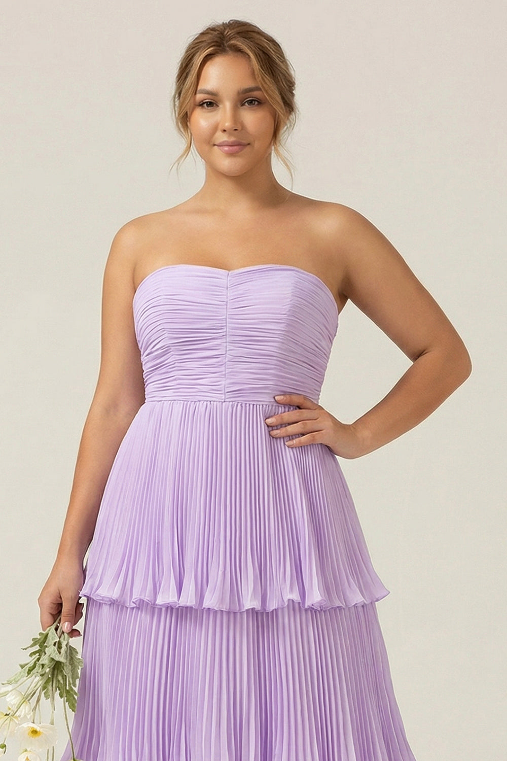 Robe d’honneur longue plissée en chiffon en ligne A et plissée en A-Line avec volants